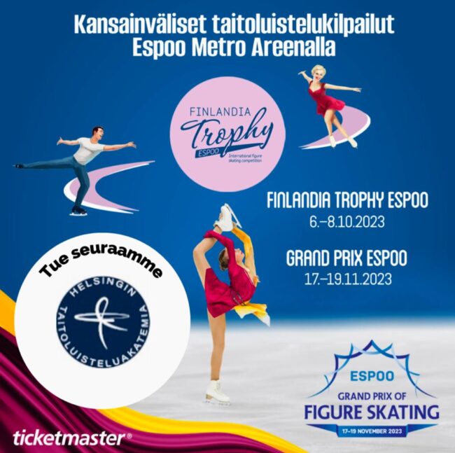 Osta liput Finlandia Trophyyn ja Grand Prix -taitoluistelukilpailuihin – tuet samalla seuramme toimintaa!