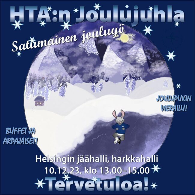 HTA:n Joulujuhlaa ”Satumainen Jouluyö” vietetään sunnuntaina 10.12.2023 klo 13.00-15.00 Helsingin Jäähallin harjoitushallilla.