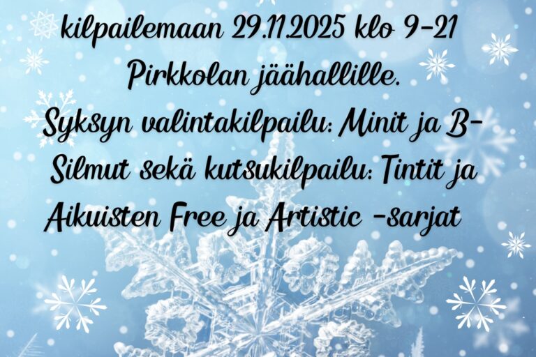 Lasten luistelukoulut Syksyn luistelukouluihin ehtii vielä hyvin mukaan! Kauden edetessä laskutamme loppukauden jäljellä olevien kertojen perusteella! Lisätietoja luistelukoulu-ilmoittautumisesta löydät täältä:…