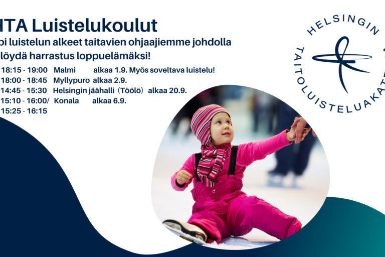 HTA:n tulevan syksyn luistelutarjonnasta löytyy lapsille luistelukouluja useana päivänä viikossa. Ilmoittautuminen luistelukouluihin avautuu kesän aikana.