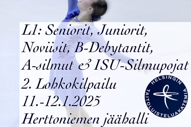 HTA järjestää: Seniorit, Juniorit, Noviisit, B-Debytantit ja A-Silmut/lohkon ISU-Silmupojat, 2. lohkokilpailu (lohko 1)