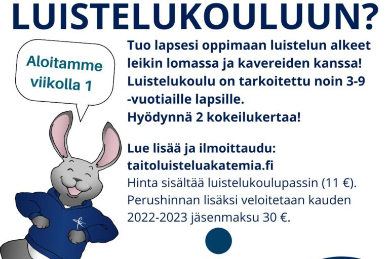 Sunnuntaina 8.1.2023 aloittavat Kaarelan ja Jäähallin luistelukoulut ja seuraavalla viikolla aloittavat Malmin, Myllypuron ja Vuosaaren luistelukoulut.